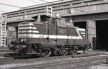 TitelDiesellocomotief 8027 aan de tractiewerkplaats Schaarbeek