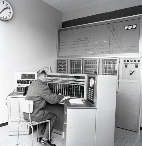 Deze fotogroep bestaat uit twee negatieven. Ze tonen een seingever gezeten aan het seingestel alrelais. Met behulp van drukknoppen legt hij een reisweg aan en bedient hij de wissels en seinen. Op het optisch controlebord (OKB) dat zich boven het seingestel bevindt, geven lampjes de bezette sporen, de aangelegde reiswegen en de stand van seinen en wissels weer.