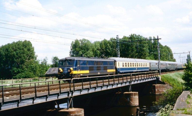 Deze fotogroep bevat vier dia's. Ze tonen internationale treinen tussen Essen en Roosendaal (Nederland). Op de eerste foto wordt de trein gesleept door elektrische locomotief 2553. Op de andere foto's zien we elektrische locomotief 2552 een Beneluxtrein duwen. Deze laatste trein heeft vooraan een rijtuig met stuurpost van Nederlandse makelij. Schenking van Myriam Hendrickx.