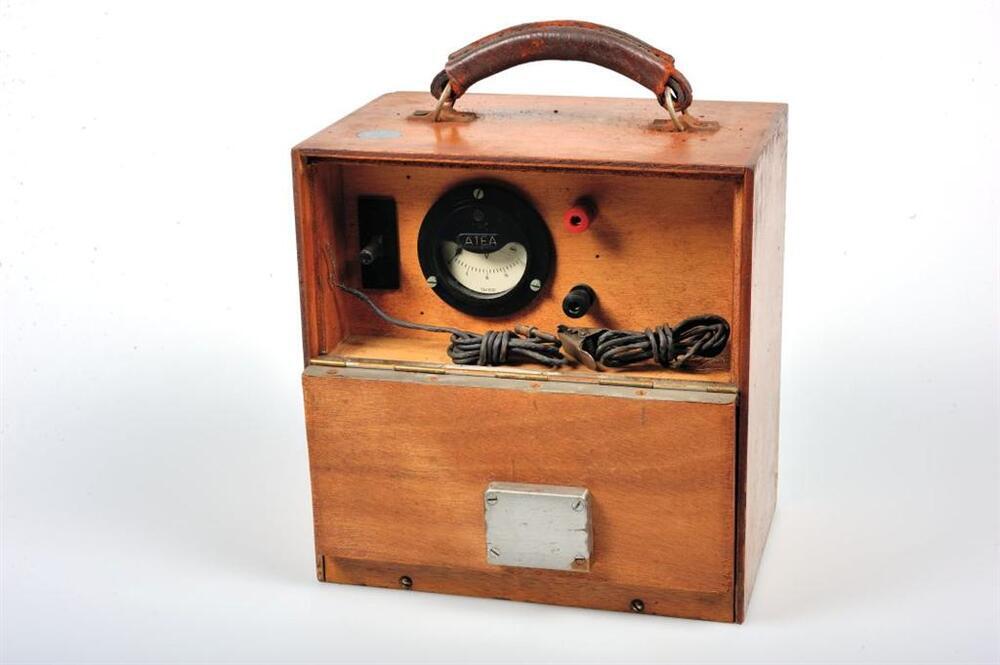 De bovenste helft van de houten kist klapt langs voor open. Binnen is een wijzerplaat die gaat van 1 tot 20. Daarnaast is er ook een schakelaar en twee openingen om kabels in te steken. In de kist zit een kabel met een tang om vast te maken aan een elektrische pool. De kist kan afgesloten worden maar de sleutel ontbreekt. Bovenaan is er een leren handvat, zodat de kist gemakkelijk kon meegenomen worden op de baan.