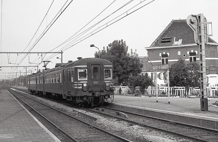 Dit tweeledig motorstel behoort tot de reeks 06, schijf 1973. Vóór het motorstel zien we tussen de rails een 'krokodil'. Dit is een veiligheidstoestel dat zich ter hoogte van een sein bevindt. Uiterste rechts zien we de achterzijde van een permissief sein. Een permissief gesloten sein mag overschreden worden met beperkte snelheid, indien de machinist eerst stopt voor het sein en bepaalde documenten invult. Schenking van Myriam Hendrickx.