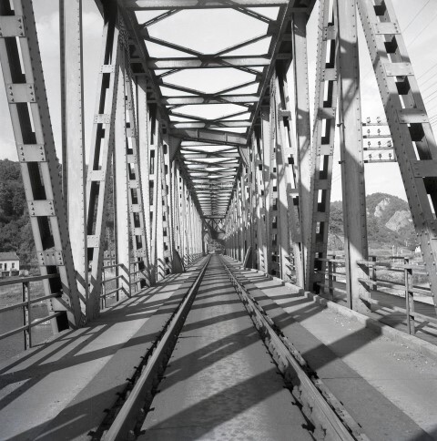 BeschrijvingDeze fotogroep bestaat uit drie negatieven. Ze tonen een vakwerkbrug met enkel spoor. De brug rust op betonnen pijlers.