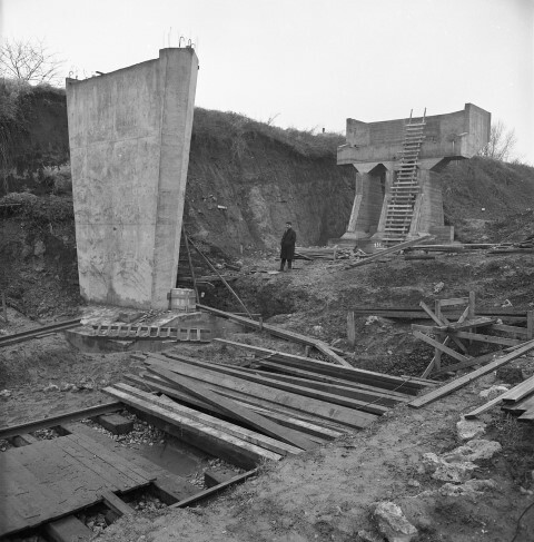 Deze fotogroep bestaat uit negen negatieven. De foto's tonen de pijlers in gewapend beton van een viaduct in opbouw. Het kunstwerk werd in het gehucht La Carosse aangelegd zodat spoorlijn 119 (Luttre - Châtelet) de autosnelweg tussen Nijvel en Charleroi kon overspannen. Tot 1985 maakten goederentreinen gebruik van dit viaduct.