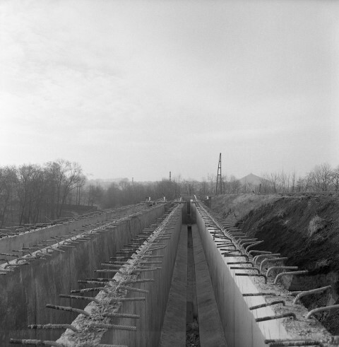 Deze fotogroep bestaat uit twaalf negatieven. De foto's tonen een viaduct in gewapend beton waarvan de ruwbouw voltooid is. Het brugdek werd met behulp van een hijskraan met kraanarm op de pijlers geplaatst. Op een aantal foto's zien we arbeiders aan het werk. Het viaduct werd in het gehucht La Carosse aangelegd om het lijn 119 (Luttre - Châtelet) mogelijk te maken de autosnelweg tussen Nijvel en Charleroi te overspannen. Rechts bevindt zich nog de oorspronkelijke bedding waarlangs telefoonpalen opgesteld staan. Tot 1985 maakten goederentreinen gebruik van dit viaduct.