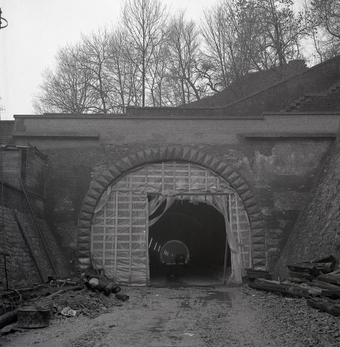 Deze fotogroep bestaat uit elf negatieven. De foto's tonen de werkzaamheden aan de tunnel. Deze loopt met een lengte van 848 meter tussen de stations Luik-Paleis en Luik-Vivegnis. Naar aanleiding van de elektrificatiewerken aan spoorlijn 34 (Luik - Hasselt) werd het bakstenen gewelf van de tunnel met metalen netten en mortel verstevigd.