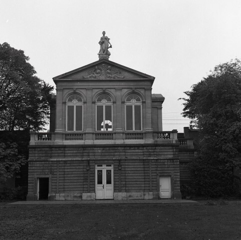 Deze fotogroep bestaat uit acht negatieven. Ze tonen de voor- en achterzijde van het gebouw in neoclassicistische stijl. De frontons van de voor- en achtergevel zijn bekroond met een allegorische figuur. In het fronton aan de kant van de sporen omarmen twee leeuwen een schild met kroon waarin de initialen van Leopold II verwerkt zijn. Boven de sporen hangt een vereenvoudigde bovenleiding die uitsluitend voor lage snelheden geschikt is.