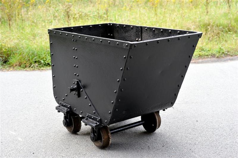 BeschrijvingDeze kuip om steenkool te vervoeren heeft vier wielen en was gemaakt om op een smalspoor te rijden.