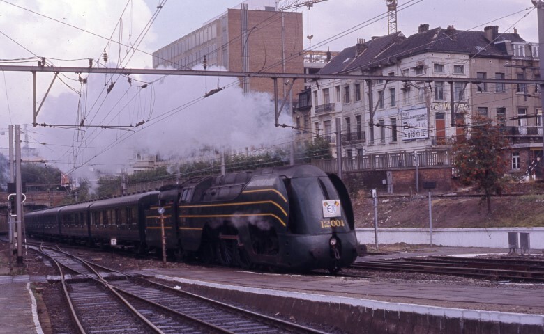 Deze fotogroep bevat vijf dia's. Op 28 augustus 1986 reed stoomlocomotief 12.004 met vijf L-rijtuigen in het Brussels gewest voor een historische rit. De foto's werden genomen in de stations Brussel-Leopoldswijk en Essene-Lombeek. Schenking van Myriam Hendrickx.