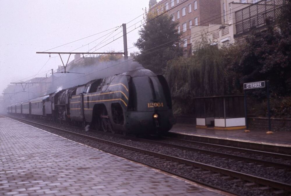 Deze fotogroep bevat 13 dia's. Op 11 oktober 1986 reden de stoomlocomotieven 12.004 en 29.013 met zes K 1-rijtuigen een historische rit op spoorlijn 161 (Brussel - Namen). De foto's werden genomen in het station Etterbeek en de omgeving van Beuzet. Schenking van Myriam Hendrickx.