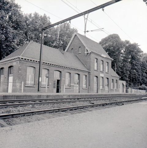 De foto toont de zij- en achtergevel van het station. Boven de sporen hangt een compoundbovenleiding. Deze zorgt bij hoge snelheden voor een goede stroomafname door de locomotief. Station Dilbeek ligt langs spoorlijn 50 (Gent - Aalst - Brussel).