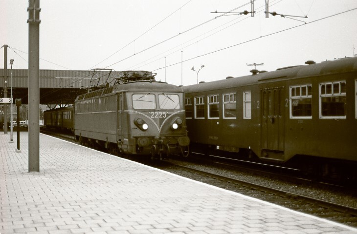 Deze locomotief behoort tot de reeks 22. De locomotief wordt 'omgezet': aangezien Genk een eindstation is, wordt zij gekoppeld aan de andere zijde van de trein (kant Hasselt), zodat ze deze opnieuw kan slepen. De trein bestaat uit M 2-rijtuigen. Schenking van Myriam Hendrickx.