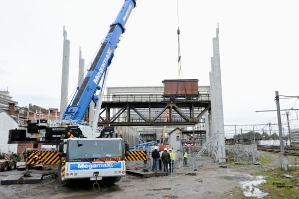 BeschrijvingDe groep bevat 27 digitale foto's. Gesloten wagen 8938 en ketelwagen 91563 worden op de brug geplaatst in Train World.
