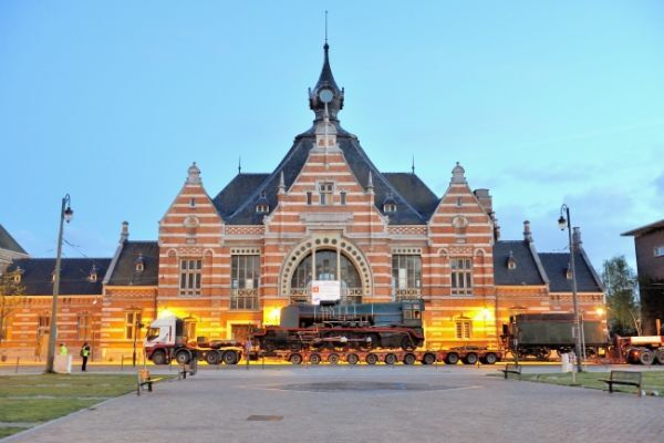 BeschrijvingDe groep bevat 37 digitale foto's. Stoomlocomotief 10.018 (type 10 Pacific) komt aan in Train World. Zij werd met een speciaal transport over de weg naar het toekomstige spoorwegmuseum gebracht.
