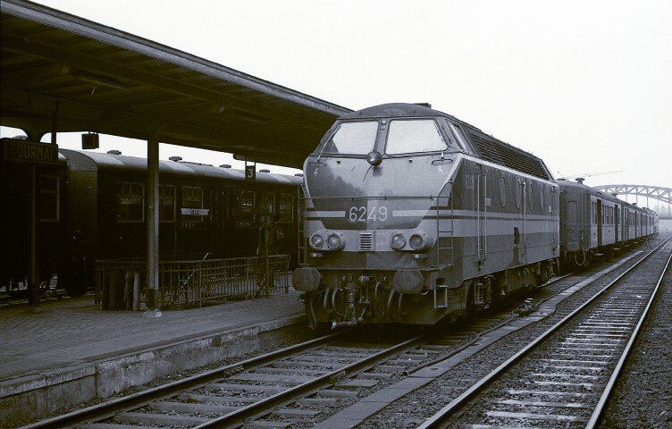 Deze locomotief behoort tot de reeks 62. Achter de locomotief staat een reizigerstrein bestaande uit M 1-rijtuigen. Links aan de andere zijde van het perron zien we M 2-rijtuigen.