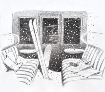 BeschrijvingDeze ontwerptekening werd gemaakt tijdens de conceptfase van het spoorwegmuseum Train World. Op de tekening zien we de inrichting van één van de compartimenten van het GCI-rijtuig als verbeelding van een skivakantie.