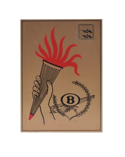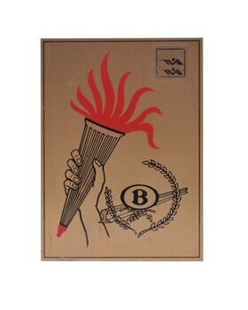 BeschrijvingOp het metalen plaatje staat een hand die een brandende toorts vasthoudt. Daarnaast is het NMBS-logo afgebeeld boven een spoorstaaf en binnen een laurierkrans. Bovenaan rechts hangt een sticker met een icoon dat duidt op een schietclub.