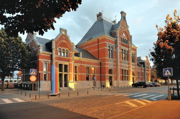 BeschrijvingDe groep bevat acht digitale foto's. Deze buitenzichten van het station Aat langs de straatkant zijn bij valavond genomen.