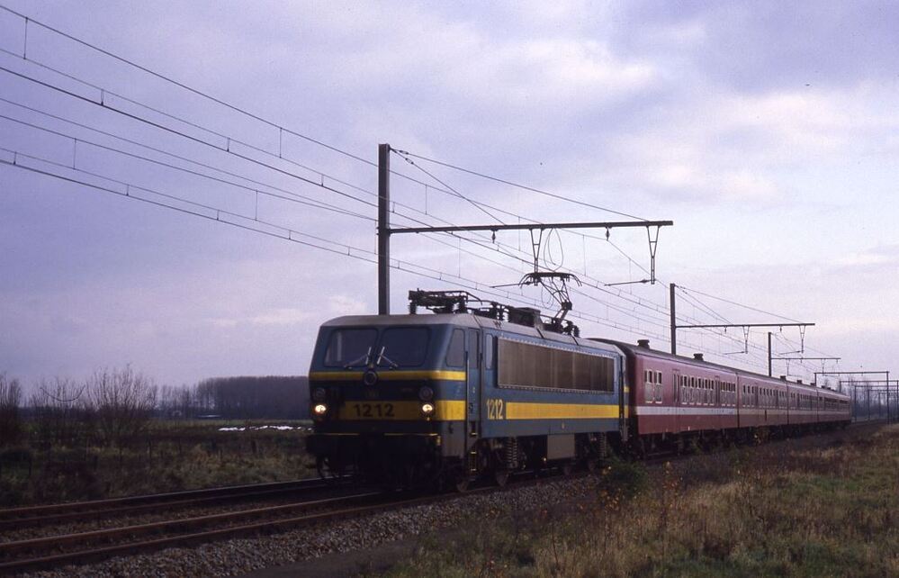 TitelElektrische locomotief 1212 met M 4-rijtuigen in Beervelde