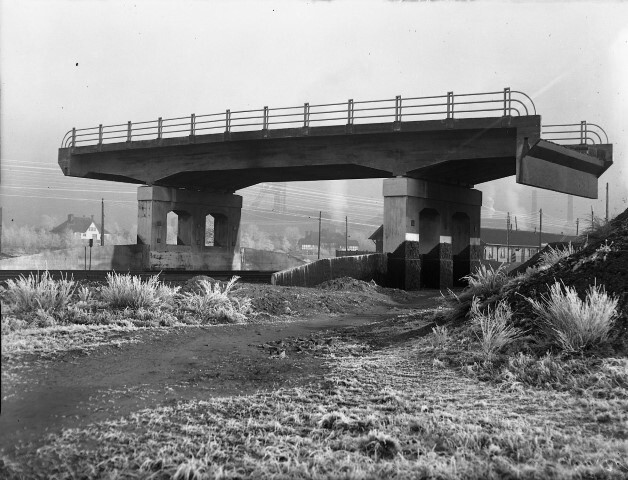 BeschrijvingDeze fotogroep bestaat uit twee glasplaten. Ze tonen de betonnen brug van de huidige Guillaume Lambertlaan over spoorlijn 21A (Hasselt - As - Maaseik). De brug is nog niet aangesloten op de weg.