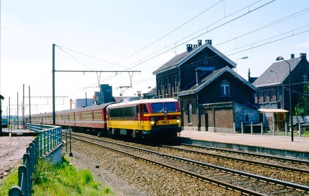 Deze fotogroep bevat vijf dia's. Elektrische locomotief 1183 sleept of duwt verschillende reizigerstreinen. De sleep bestaat telkens uit bordeaux M 4-rijtuigen. Aalbeke ligt langs lijn 75 (Gent-Sint-Pieters - Moeskroen - Franse grens). Schenking van Myriam Hendrickx.