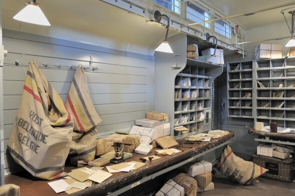 De groep bevat 9 digitale foto's. Het postrijtuig was een rijdend postkantoor. De post werd zowel vervoerd als gesorteerd. Deze binnenzichten tonen alle aspecten van het sorteren van brieven en pakjes. Op de laatste foto zien we een aantal postbussen in verschillende uitvoeringen, die aan de muur op het perron hangen.