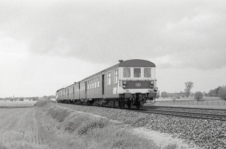 Deze trein is samengesteld uit M 2-rijtuigen en wordt gesleept door diesellocomotief 6292. Het laatste M 2-rijtuig heeft een stuurpost. Deze treinsamenstelling wordt vaak gebruikt op lijnen met een eindpunt met beperkt personeel. In zo een eindpunt moet er dan geen rangering meer uitgevoerd worden om de locomotief vooraan de trein te zetten. De locomotief kan de trein op de terugweg duwen, terwijl de bestuurder zich in het rijtuig met stuurpost vooraan de trein bevindt. Schenking van Myriam Hendrickx.