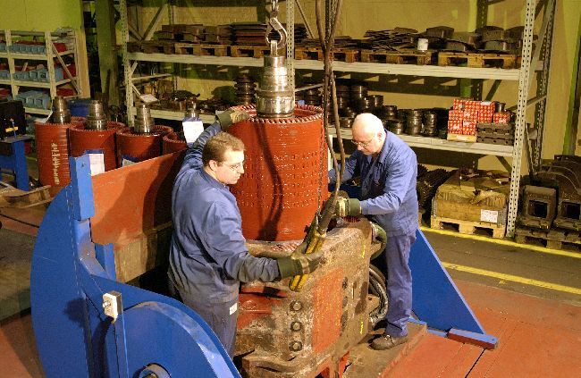 TitelTechniekers aan het werk in de centrale werkplaats Salzinnes
