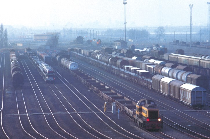 BeschrijvingDe foto toont een sporenbundel waar goederentreinen gevormd worden. Vermoedelijk zien we een rangeerlocomotief reeks 71 aan het werk te Antwerpen-Noord.