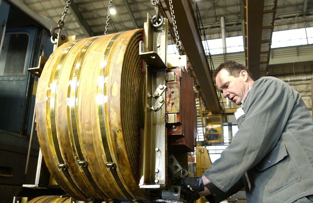 De groep bevat twee digitale foto's. Enkele techniekers zijn aan het werk in hal 8 van de centrale werkplaats Salzinnes. Een technieker heeft met behulp van een takel vermoedelijk een ankerspoel verwijderd uit de kast van een elektrische locomotief reeks 21 of 27. Een ankerspoel dient voor het opwekken van het benodigde magnetisch veld in elektromotoren.