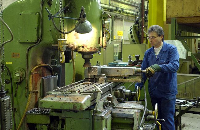 BeschrijvingDe groep bevat twee digitale foto's. In de centrale werkplaats Salzinnes is een technieker onderdelen aan het bewerken met een freesmachine. Hij draagt een beschermende bril en handschoenen.