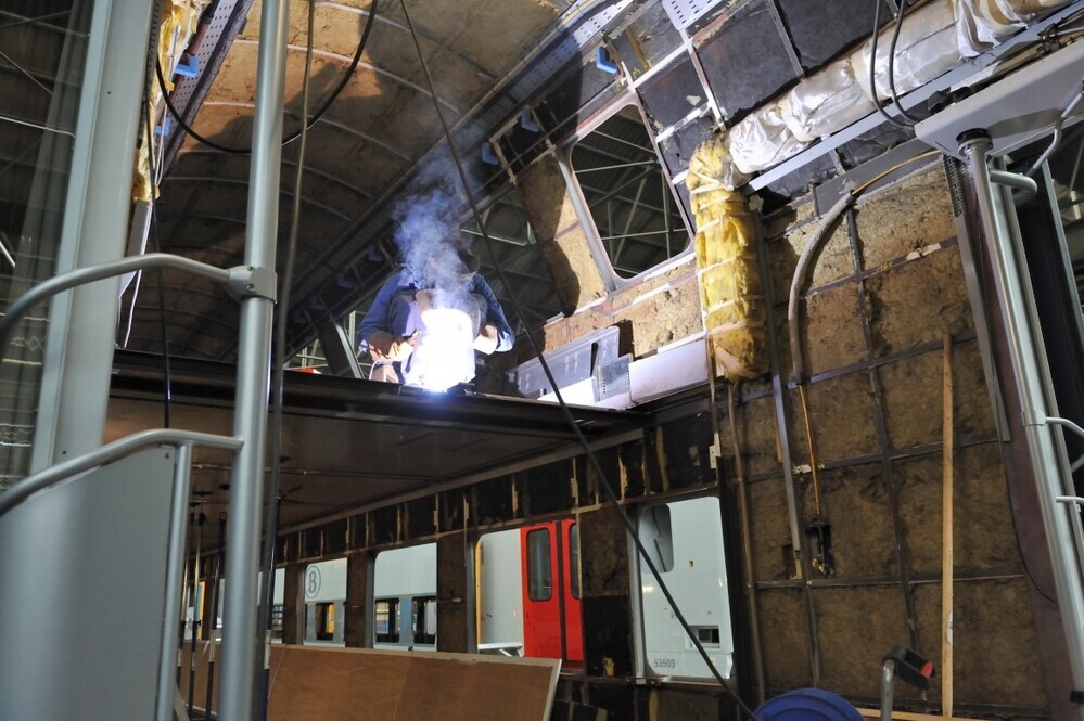 Renovatie van M 5-rijtuigen in de centrale werkplaats Cuesmes