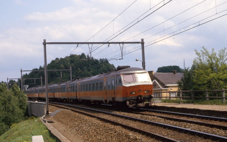 Deze fotogroep bevat vier dia's. Het eerste en laatste beeld zijn genomen ter hoogte van het station, de andere op volle baan. Motorstel 819 heeft nog zijn originele grijs-oranje schildering terwijl motorstel 820 reeds voorzien is van de nieuwe bordeaux livrei. Beide motorstellen behoren tot de reeks 08, schijf 1975. Schenking van Myriam Hendrickx.