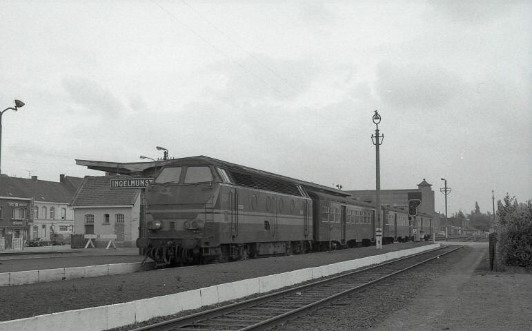 Deze locomotief behoort tot de reeks 62. Ze komt met een sleep M 3-rijtuigen aan in het station. Rechts zien we een ongeplaveid perron met een hoge lantaarnpaal. Links achter de locomotief bemerken we de kop van de perronluifel en een stationsnaambord. We zien ook nog een deel van het stationsgebouw. Schenking van Myriam Hendrickx.