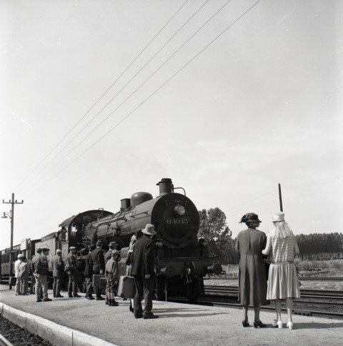 Deze fotogroep bestaat uit negen negatieven. Ze tonen stoomlocomotief 64.045 (2C Ten Wheel) met een sleep GCI-rijtuigen in het station Zichem. Acteurs, uitgedost in kledij uit de jaren twintig, zien de trein op spoor 3 het station binnenrijden. Na een vluchtig afscheid nemen ze plaats in de houten rijtuigen. Een man met bolhoed maakt een praatje met de machinisten. De stoker wakkert de vuurhaard aan. De conducteur raadpleegt zijn uurwerk en geeft het vertreksein na het manueel sluiten van de deuren. Uitgewuifd door de achterblijvers zet de trein zich langzaam in beweging.
