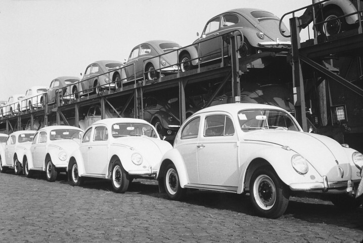 BeschrijvingDe foto toont een goederentrein voor het vervoer van nieuw geassembleerde Volkswagens naar diverse distributiecentra. De trein is samengesteld uit open dubbeldekwagens.