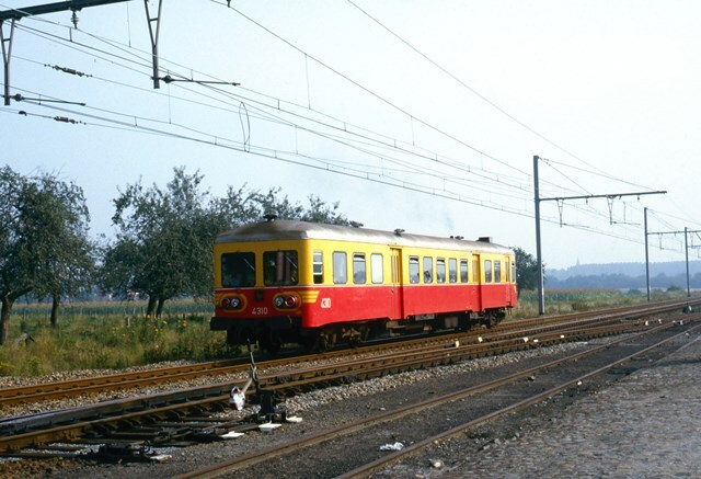 Deze fotogroep bevat drie dia's. Op de eerste dia zien we op de voorgrond een handel met tegengewicht voor de manuele bediening van een wissel. Op de andere dia's staat de motorwagen aan het perron. We zien het stationsgebouw met stationsnaam, een luifel, een stationsnaambord en wachthuisjes. Station Alken ligt aan de spoorlijn 21 (Landen - Hasselt). Schenking van Myriam Hendrickx.