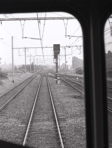 TitelZicht op lijn 130A in Erquelinnes, genomen vanuit een stuurpost