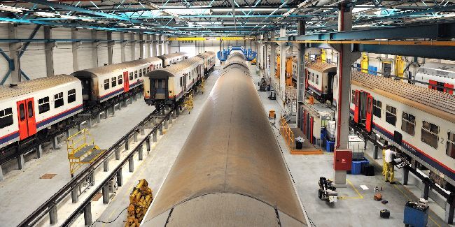 BeschrijvingDe groep bevat 5 digitale foto's. In de Technische Onderhoudspost (TOP) Schaarbeek wordt het onderhoud van M 4- en M 6-rijtuigen uitgevoerd. Dit is een algemeen binnenzicht met verschillende rijtuigen op de brug.
