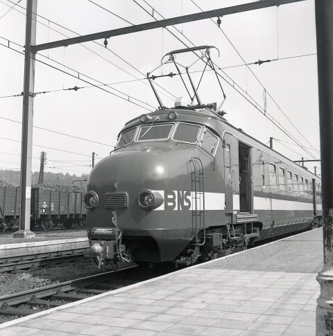 BeschrijvingDe foto toont het motorstel tijdens een testrit op de spoorlijn naar Luxemburg (lijn 162). Het donkerblauwe treinstel is uitgerust met een automatische koppeling en heeft onderaan een brede gele band met het oorspronkelijke opschrift 'BNS'. Boven de sporen hangt een compoundbovenleiding. Deze zorgt bij hoge snelheden voor een goede stroomafname door het tractievoertuig.