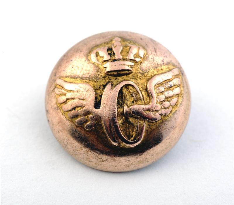 TitelGoudkleurige uniformknoop met een gevleugeld en gekroond wiel
