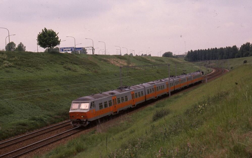 Deze fotogroep bevat vier dia's. Op de eerste dia's staat vierledig motorstel 832 (reeks 08) op het punt de tunnel onder de Schelde in te rijden. Op de laatste dia passeert de trein de gesloten stopplaats Antwerpen-Linkeroever. Het motorstel heeft nog zijn originele oranje-grijze livrei. Schenking van Myriam Hendrickx.