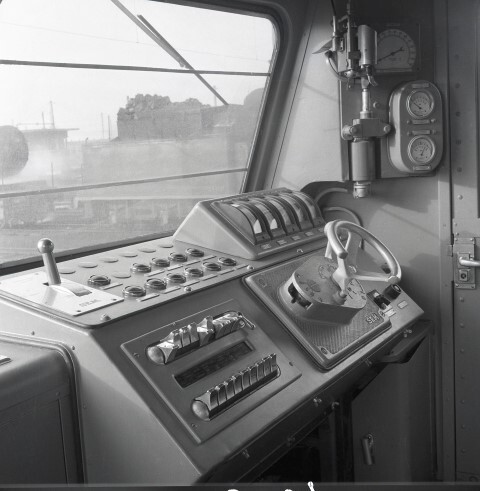 De bedieningstafel is met een snelheidskruk, drukknoppen, controlelampjes, antislip en meetapparatuur uitgerust. Rechts zien we een TELOC-meter die de snelheid van het voertuig registreert en twee manometers om de luchtdruk in de treinleidingen te meten. De voorruit is van een elektrische wasemweerder voorzien.
