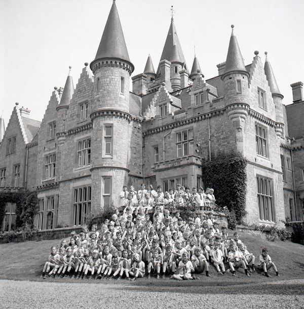 Deze fotogroep bestaat uit negen negatieven. Ze tonen kinderen van spoorwegpersoneel tijdens hun vakantieverblijf in het zuiden van de provincie Namen. Samen met hun begeleiders poseren ze voor de fotograaf. Op de achtergrond zien we het neogothische kasteel dat door de NMBS in 1958 tot vakantieverblijf werd omgebouwd. Sinds 1991 stond het gebouw leeg en raakte het snel in verval. In 2017 werd het kasteel gesloopt.