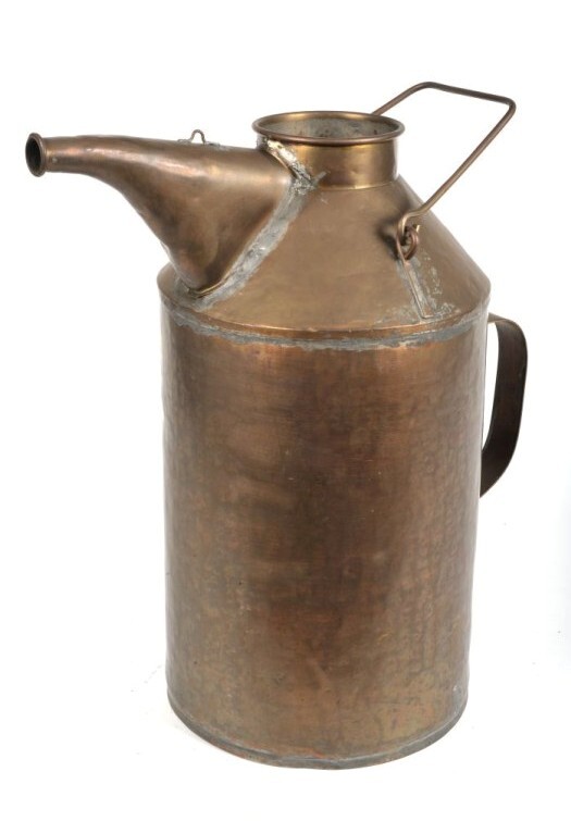 BeschrijvingKan met een lange tuit en twee handvaten: een beweegbaar handvat en een dat vastzit aan de achterkant van de kan. Achteraan werd er een klein rond plaatje vastgemaakt waarop '10 L' staat.