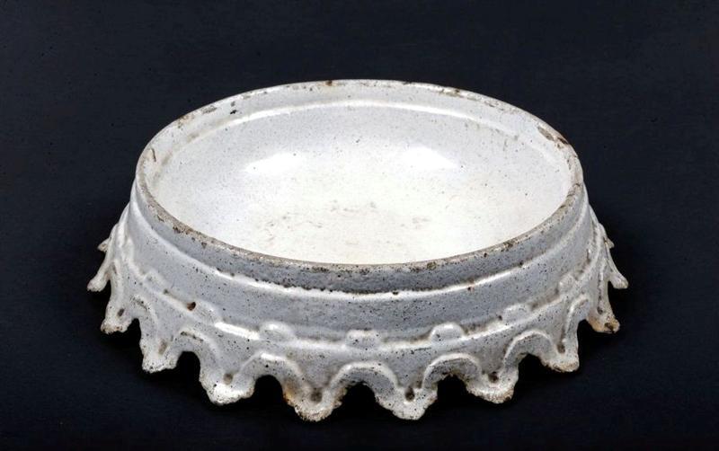 BeschrijvingWitte spuwpot of kwispedoor in de vorm van een ronde, gekartelde omgekeerde kroon. Spuwpotten stonden vroeger naast de koolbak zodat pruimtabakgebruikers erin konden spuwen.