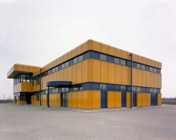 BeschrijvingDeze fotogroep bestaat uit vijf negatieven. Ze tonen de nieuwe seinpost 12 in felle gele en blauwe kleuren.