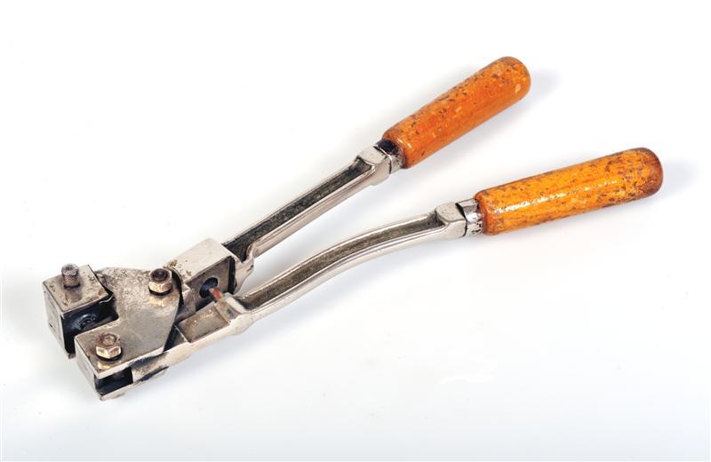 BeschrijvingNijptang voor het beveiligd afsluiten van geldzakken, kisten, sleutelkasten, enz. door middel van verzegelloodjes. Bij het dichtknijpen bracht de tang een merkteken aan op het loodje.