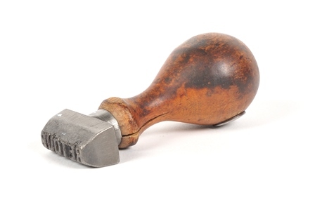 TitelMetalen stempel met houten handvat 'Retour'