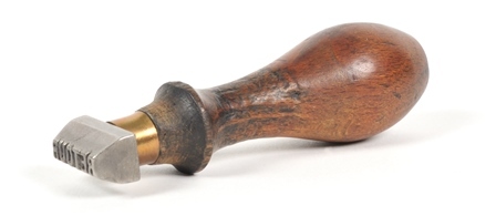 TitelMetalen stempel met houten handvat 'Retour'