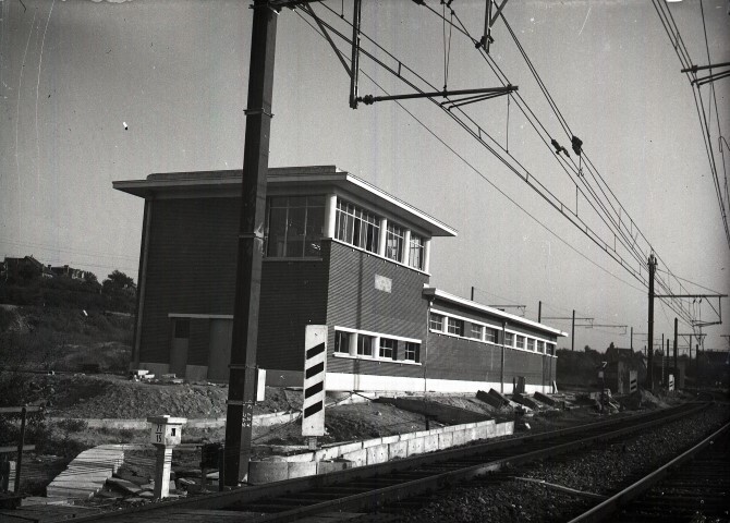 Deze fotogroep bestaat uit twee glasplaten. Ze tonen de buitenzijde van de seinpost langs spoorlijn 124 (Brussel - Charleroi). Naast de sporen staan bakens die het naderen van een sein aankondigen. Links zien we de aftakking naar spoorlijn 26 Halle - Schaarbeek. Boven de sporen hangt een compoundbovenleiding die voor hoge snelheden geschikt is.